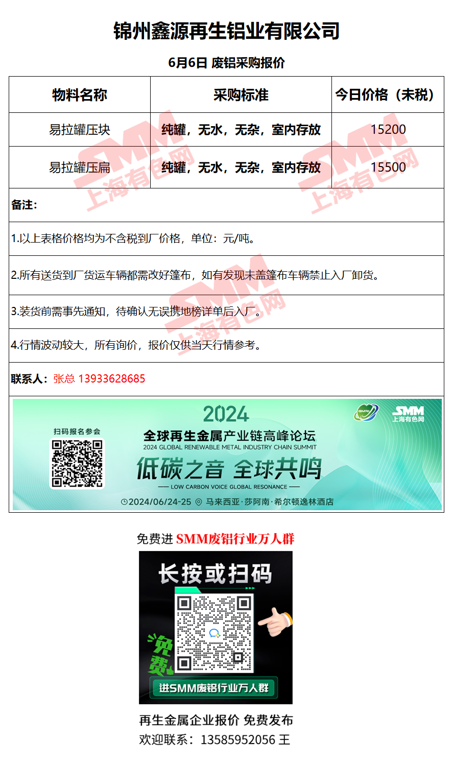 6月6日鑫源再生 废铝采购报价