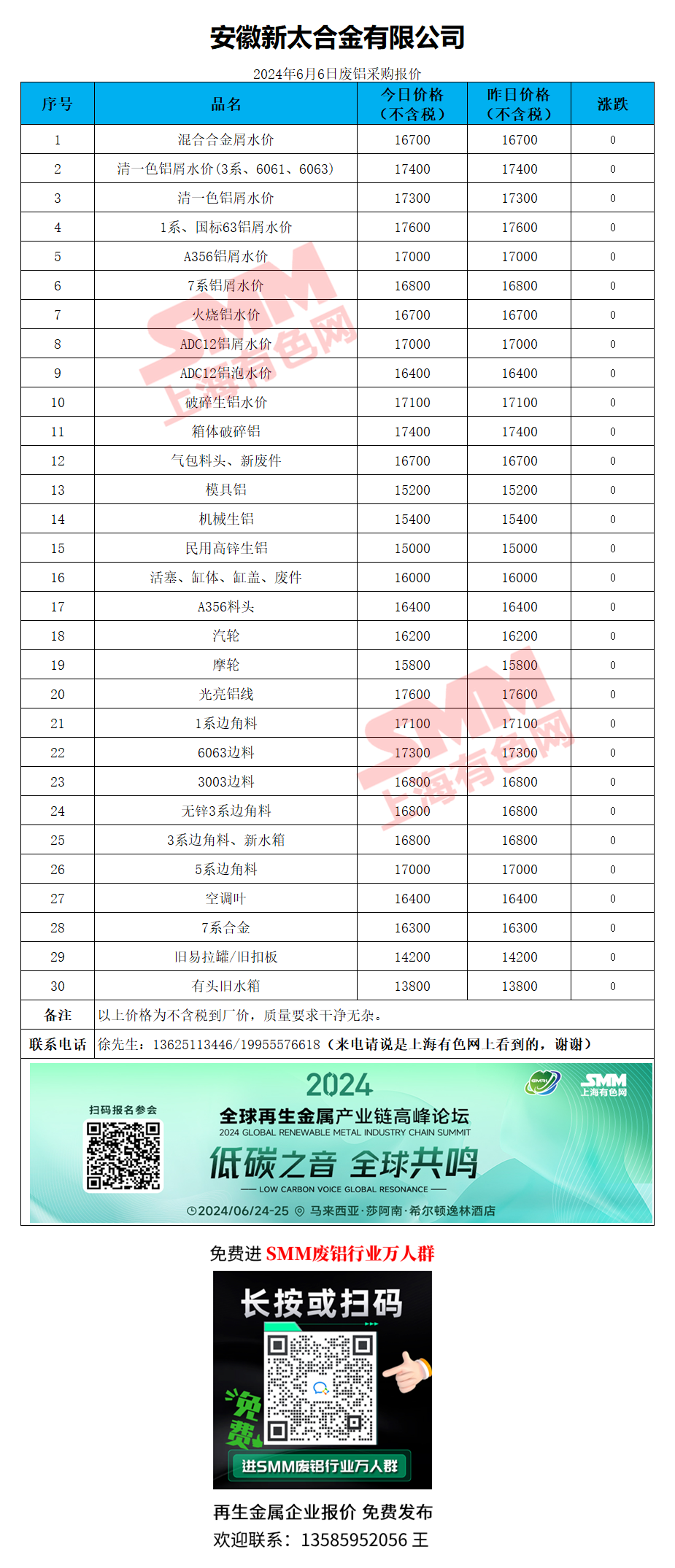 6月6日安徽新太 废铝采购报价