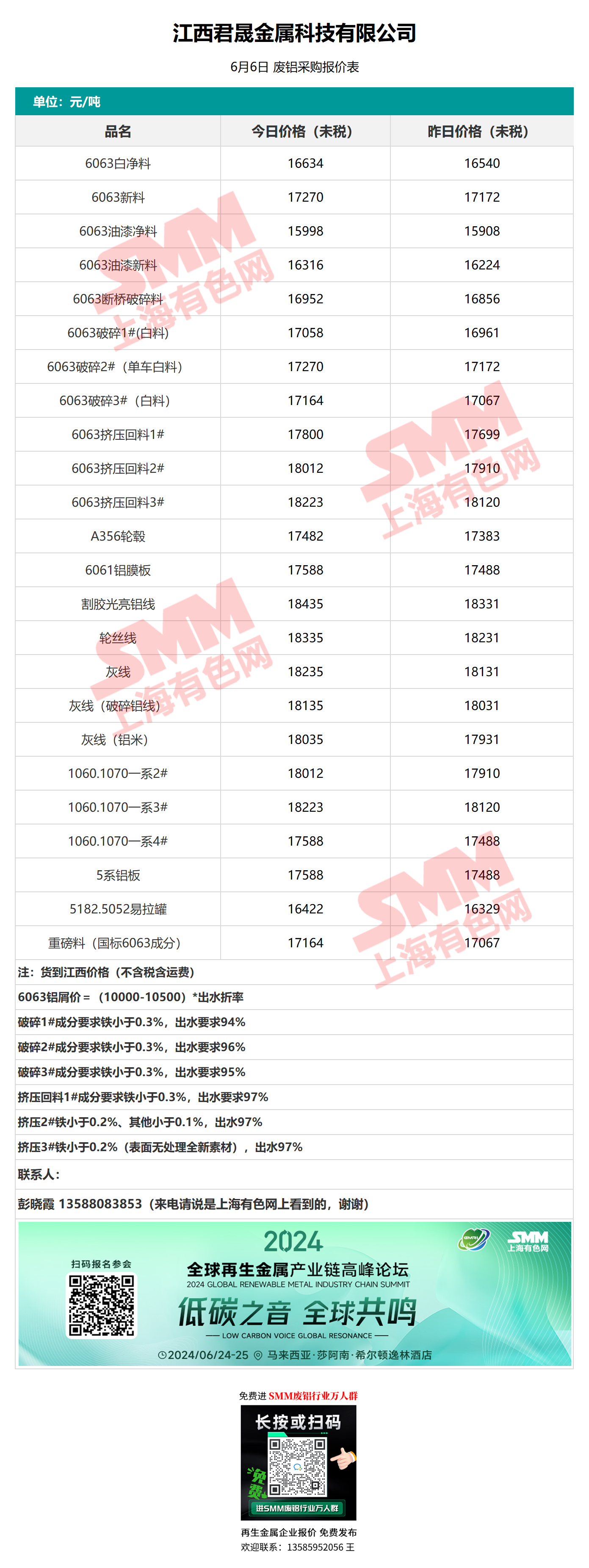 今日江西君晟金属 废铝采购报价已更新,有货的朋友欢迎联系我们!