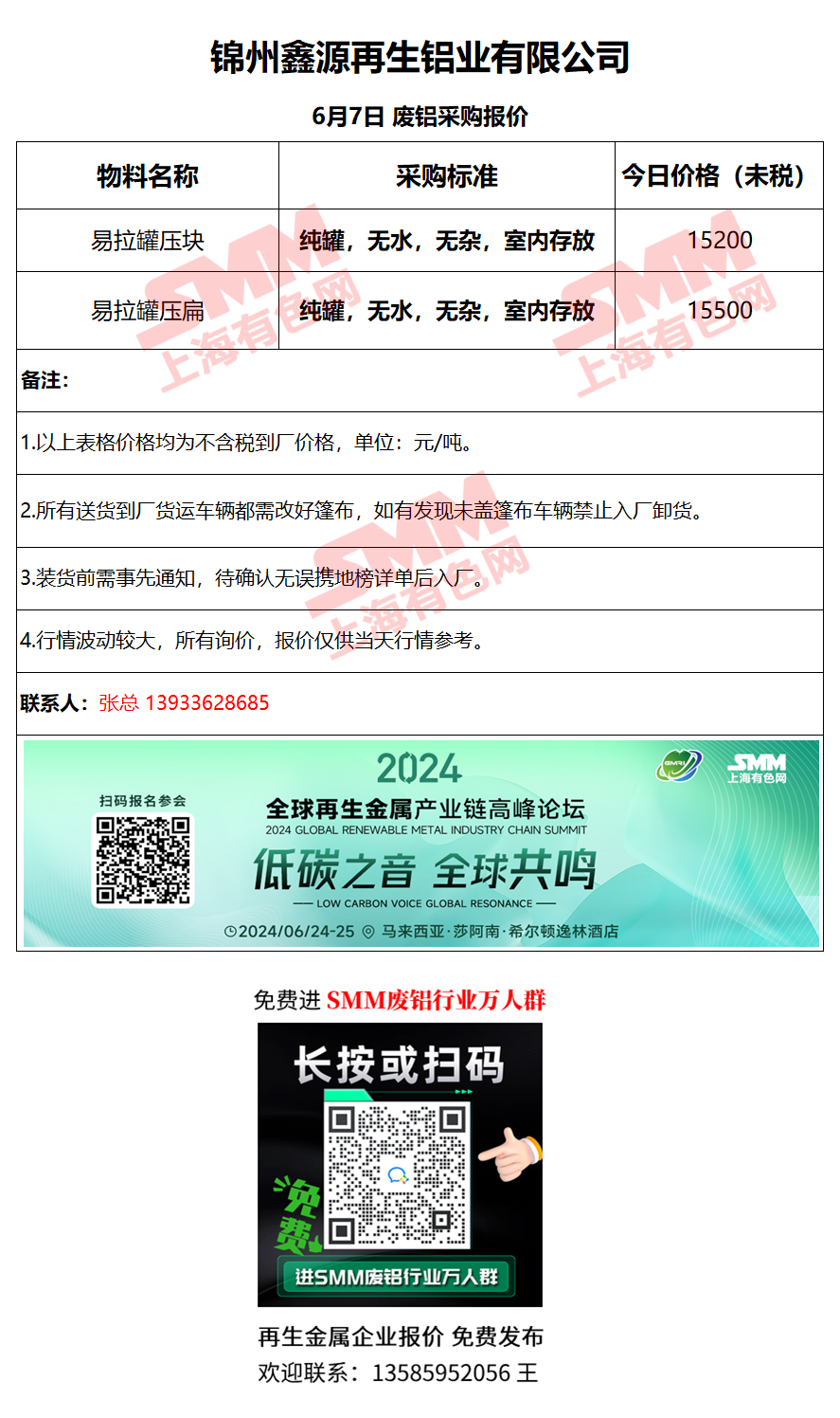 6月7日鑫源再生 废铝采购报价