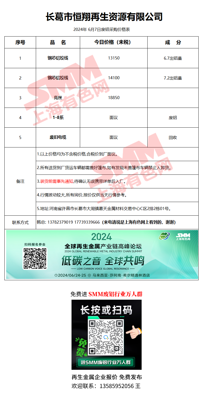 今日长葛恒翔 废铝采购报价已更新,有货的朋友欢迎联系我们!