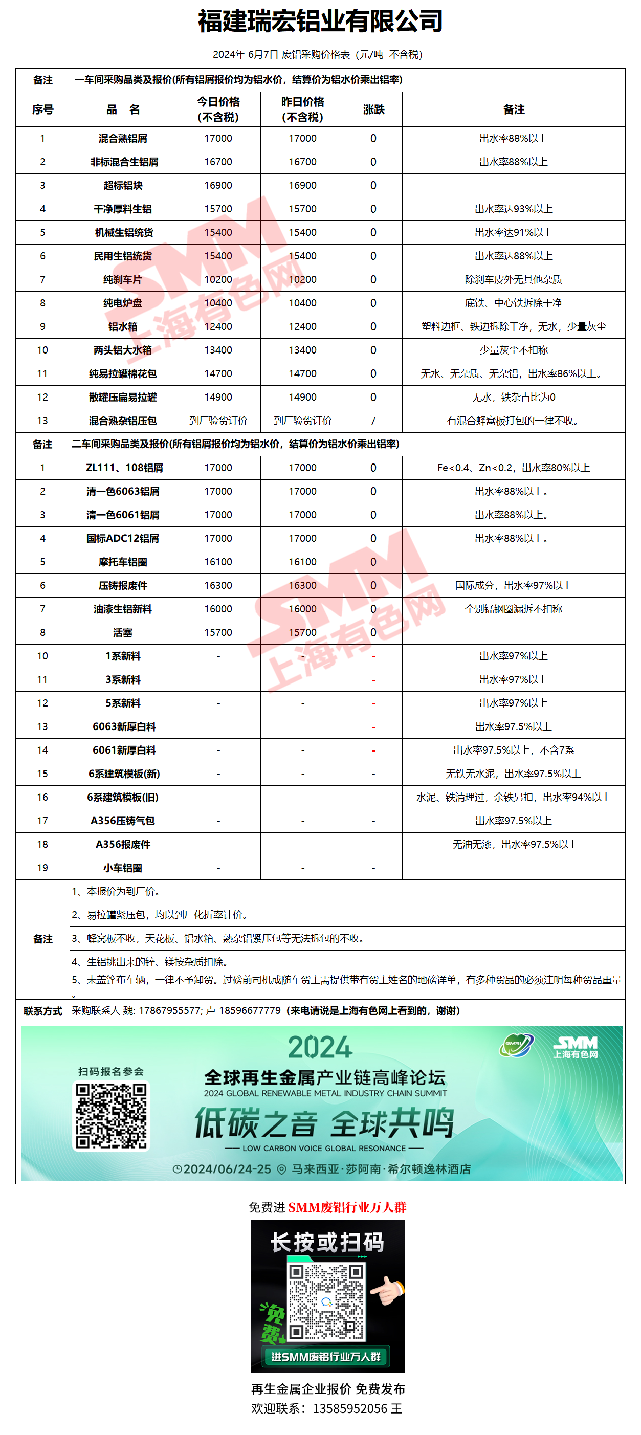 今日福建瑞宏 废铝采购报价已更新,有货的朋友欢迎联系我们!