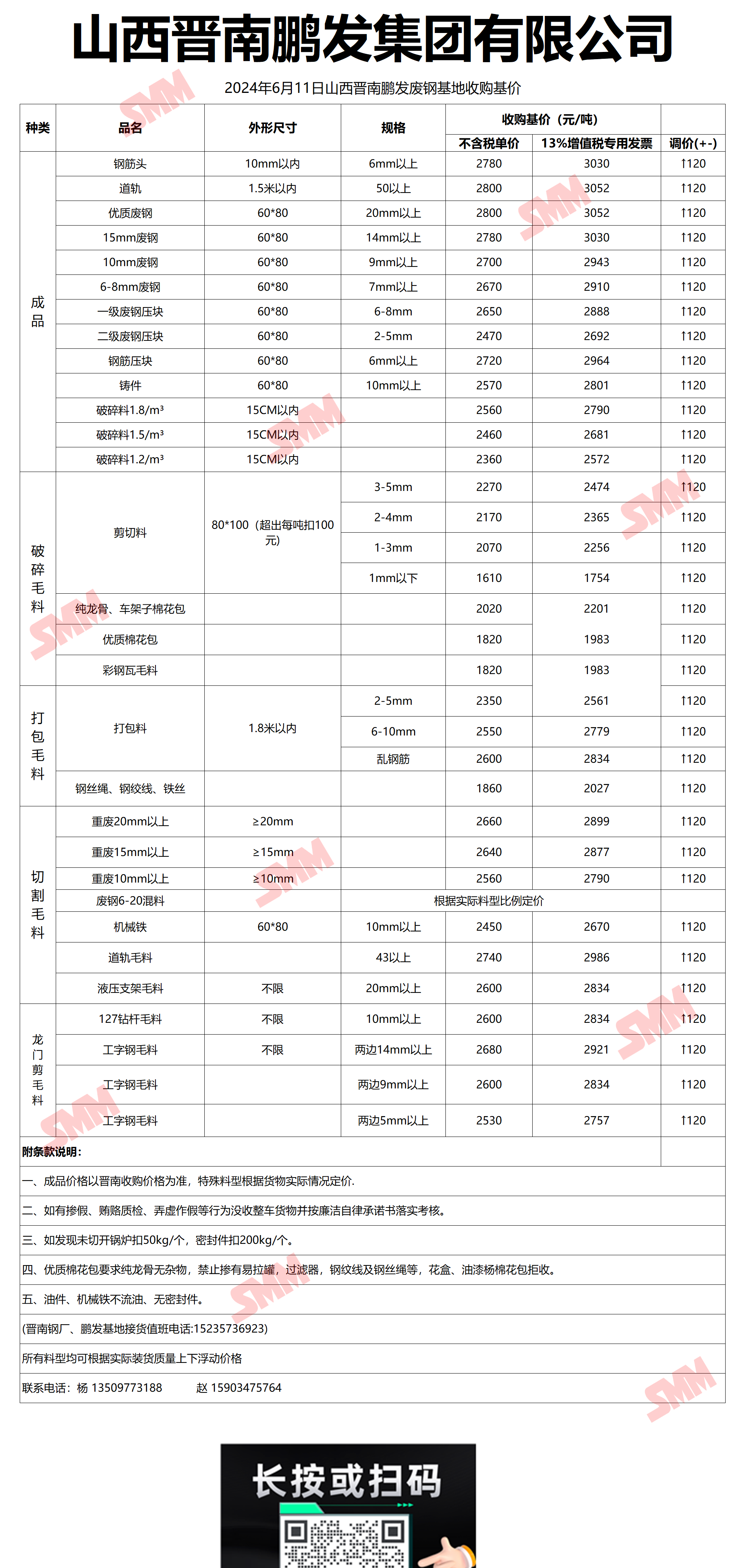 6月11日晋南鹏发 废钢收购报价