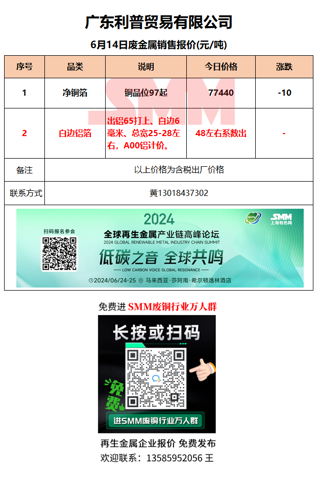 今日广东利普 废铜废铝销售报价已更新,有货的朋友欢迎联系我们!