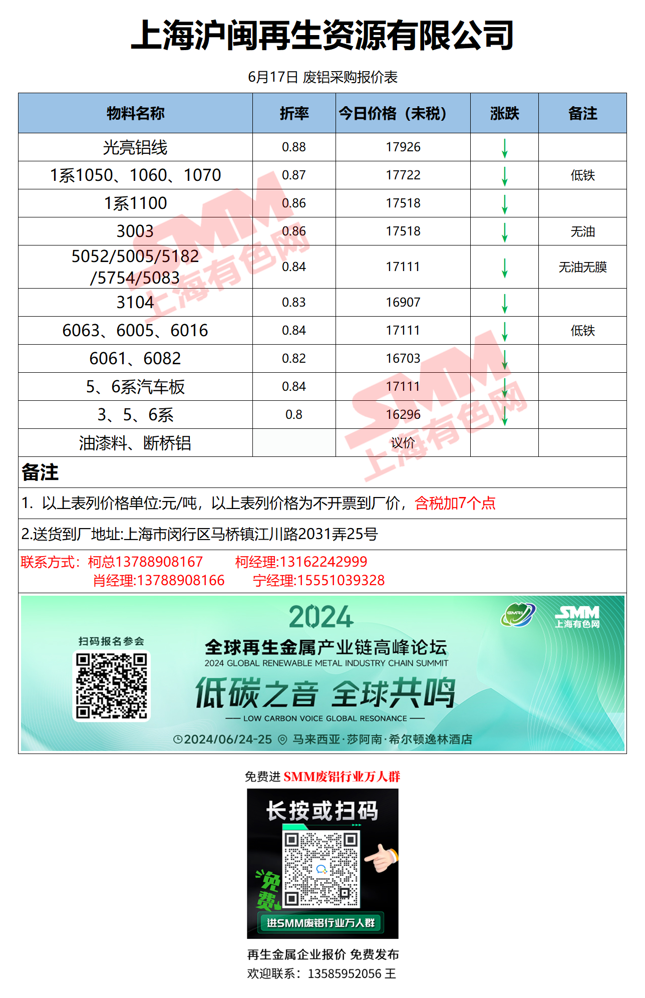 今日上海沪闽 废铝采购报价已更新,有货的朋友欢迎联系我们!
