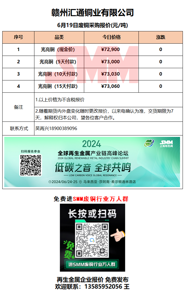 今日赣州汇通 废铜采购报价已更新,有货的朋友欢迎联系我们!