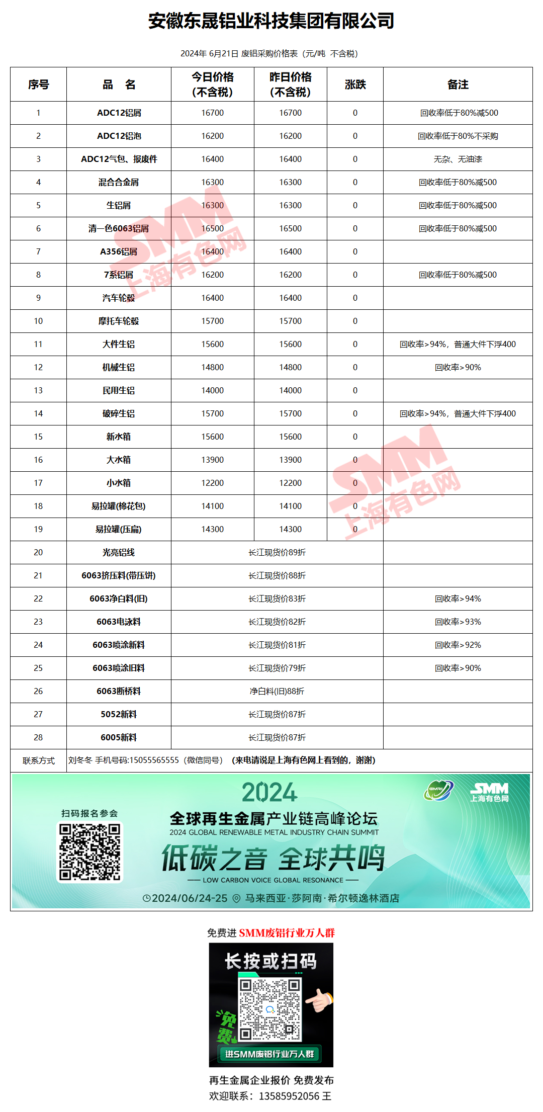 6月21日安徽东晟 废铝采购报价