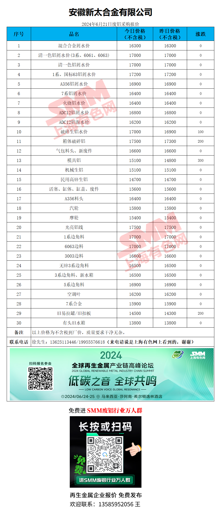 6月21日安徽新太 废铝采购报价