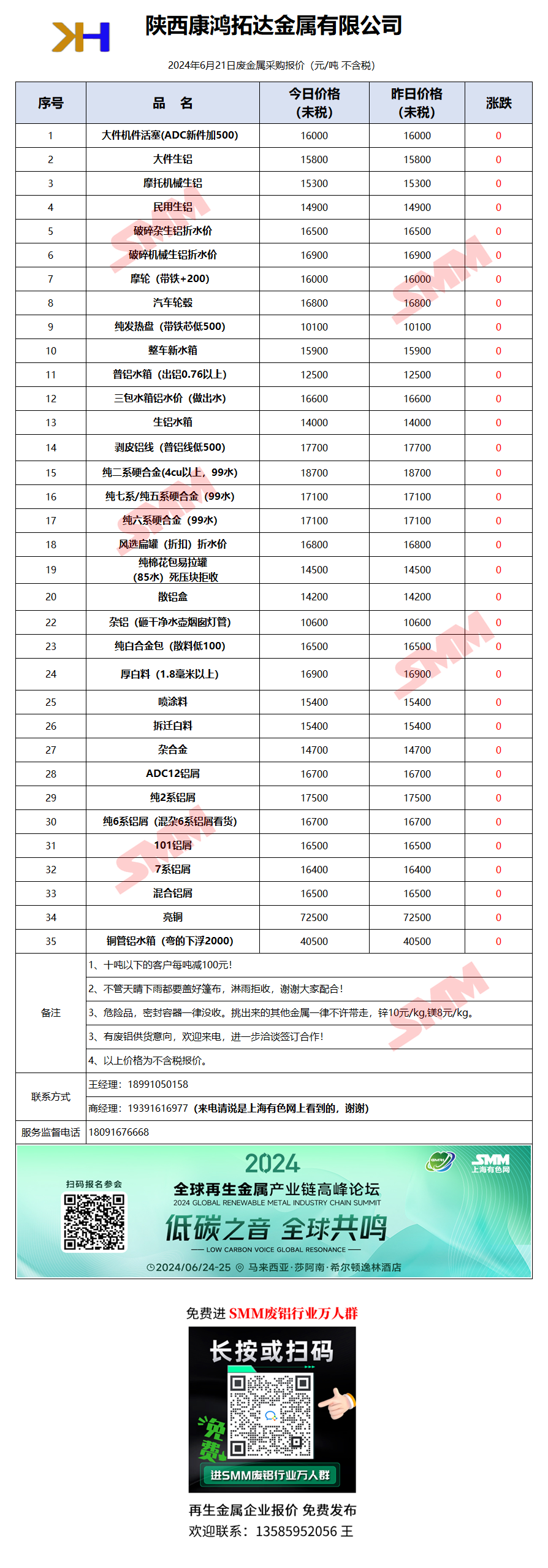 今日陕西康鸿 废铝采购报价已更新,有货的朋友欢迎联系我们!