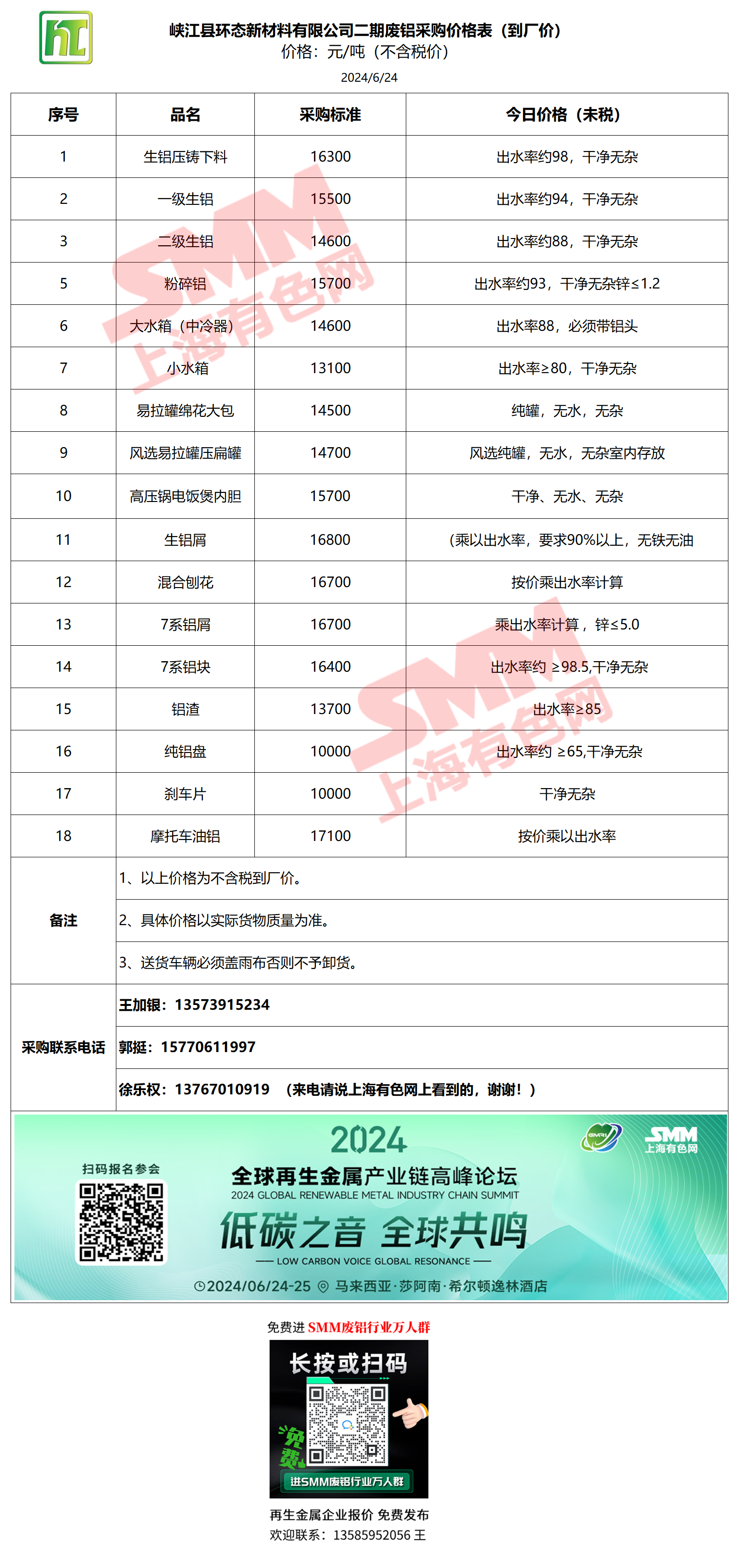 今日峡江环态 废铝采购报价已更新,有货的朋友欢迎联系我们!
