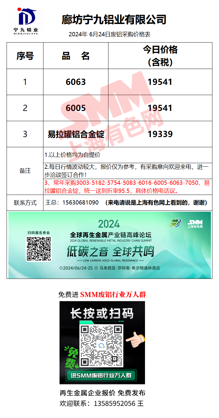 今日宁九铝业 废铝采购报价已更新,有货的朋友欢迎联系我们!