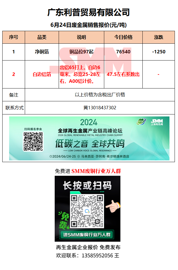 今日广东利普 废铜废铝销售报价已更新,有货的朋友欢迎联系我们!