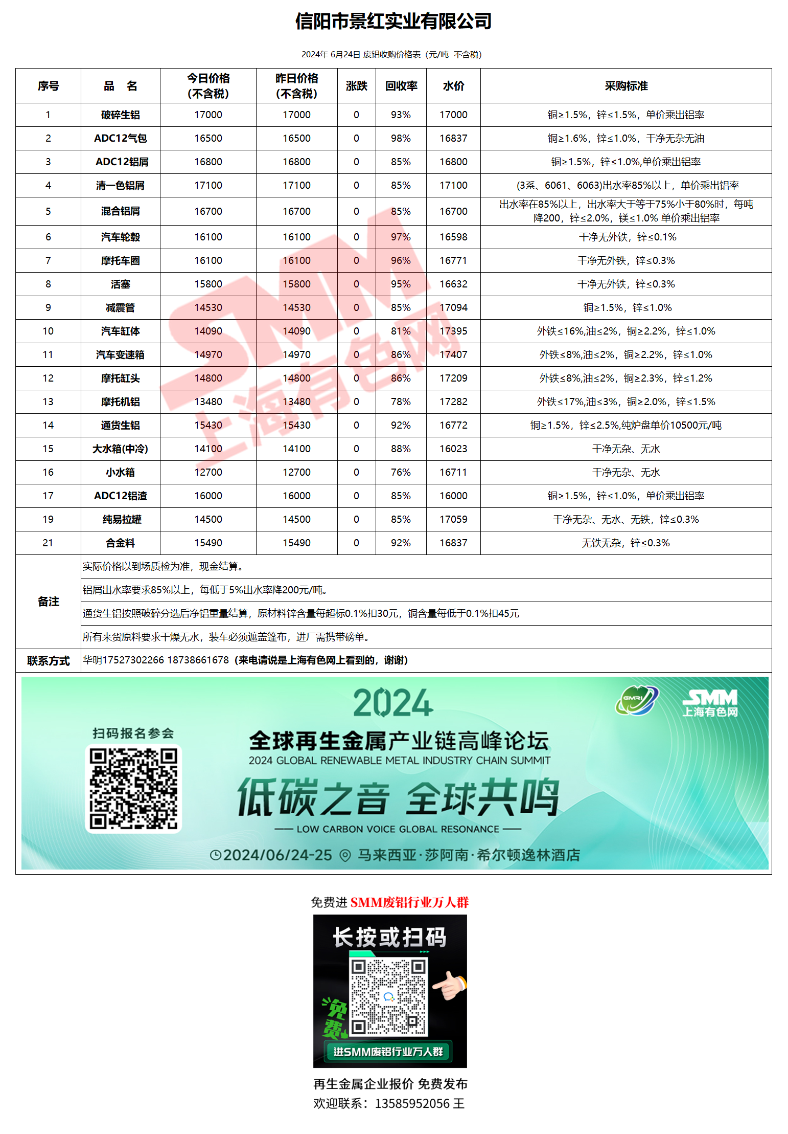今日河南景红 废铝采购报价已更新,有货的朋友欢迎联系我们!