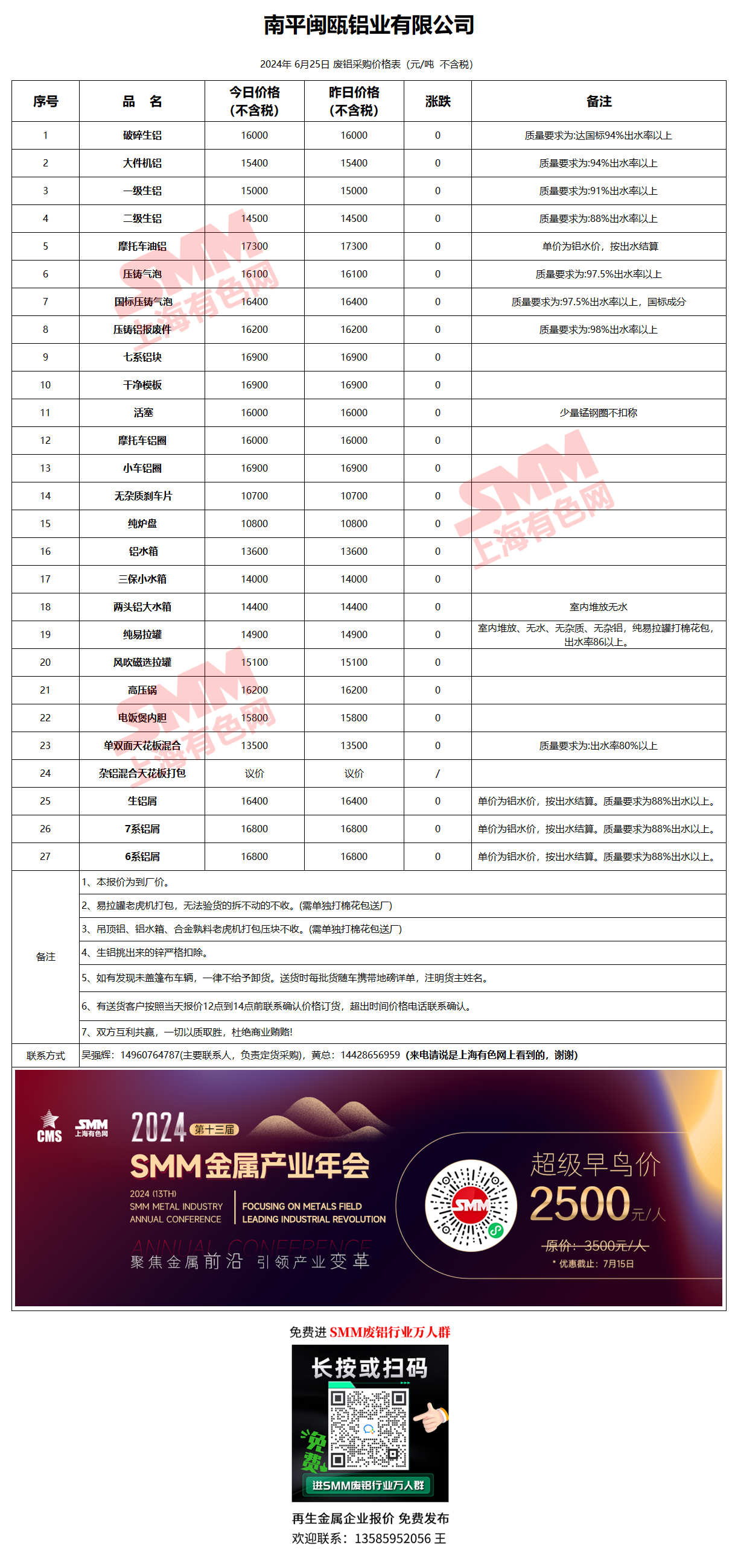 今日南平闽瓯 废铝采购报价已更新,有货的朋友欢迎联系我们!