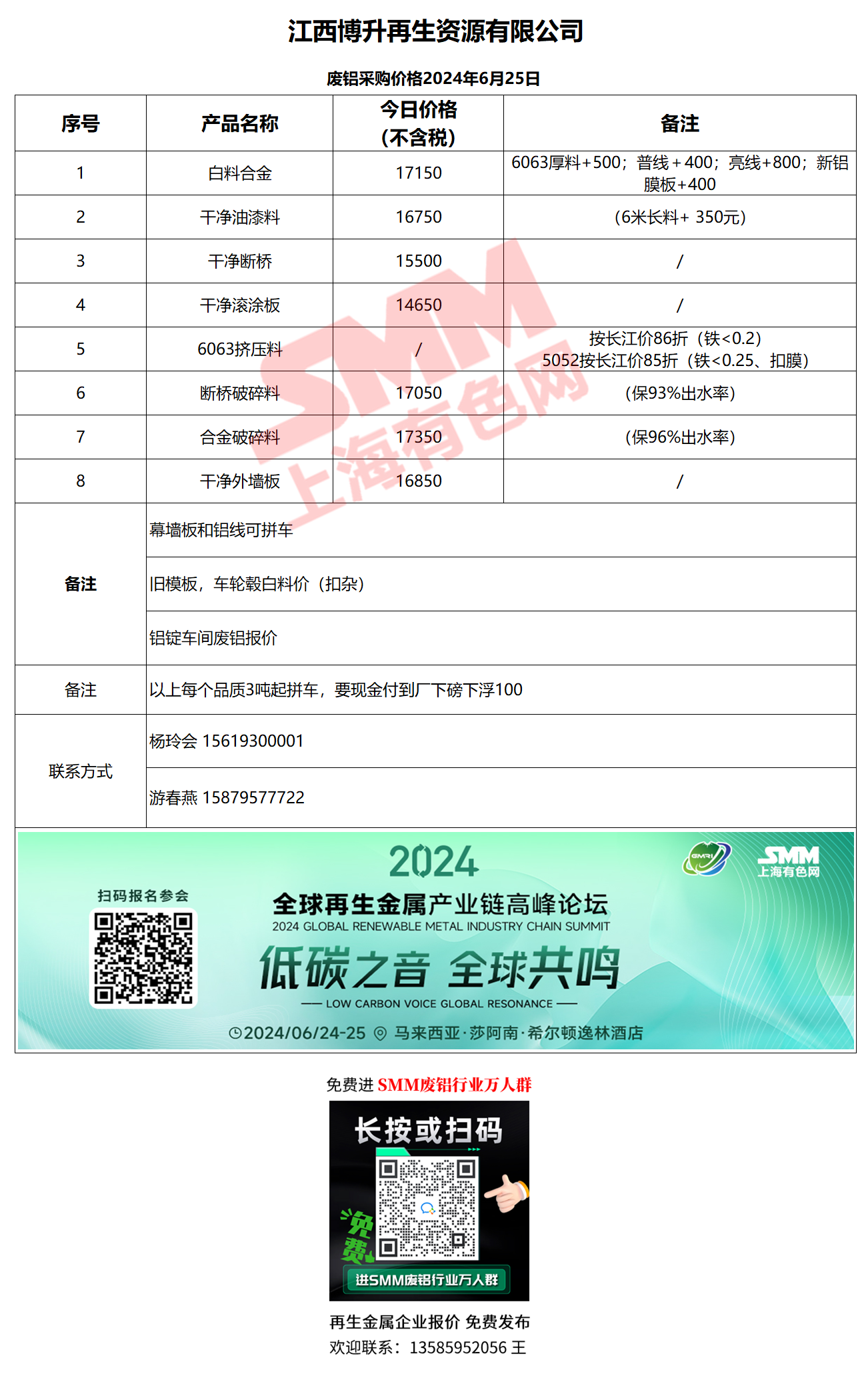 今日江西博升 废铝采购报价已更新,有货的朋友欢迎联系我们!