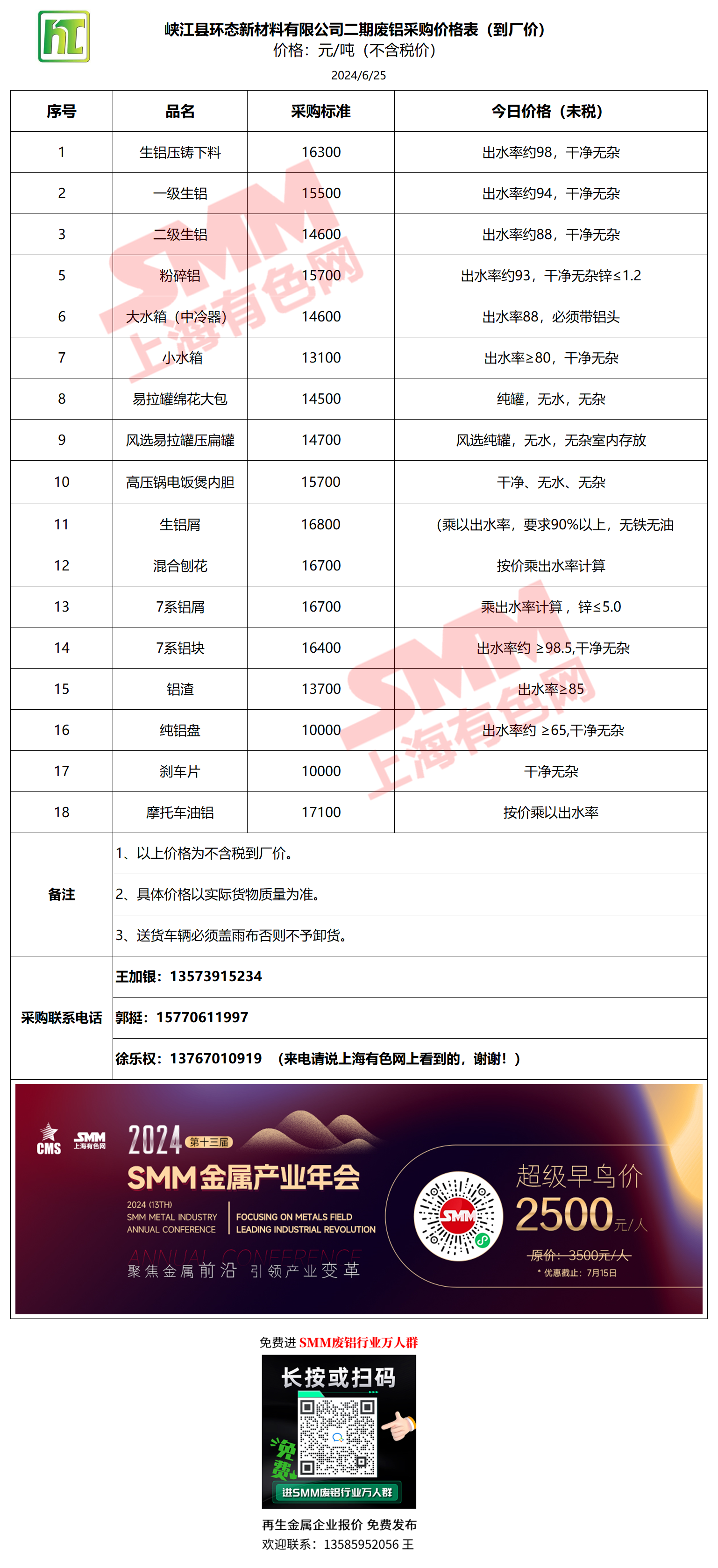 今日峡江环态 废铝采购报价已更新,有货的朋友欢迎联系我们!