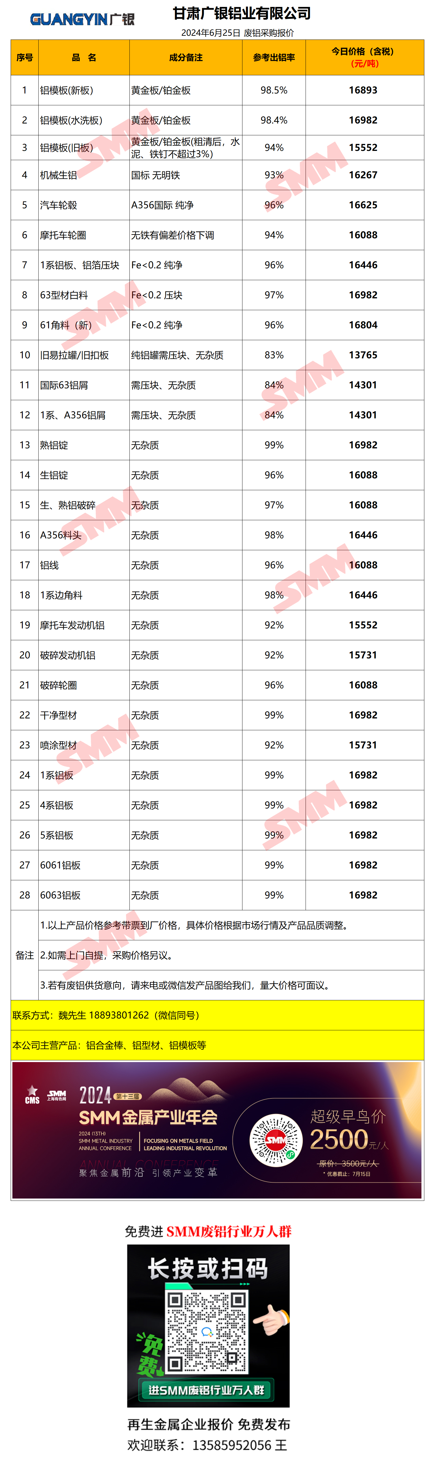 今日甘肃广银铝业 废铝采购报价已更新,有货的朋友欢迎联系我们!