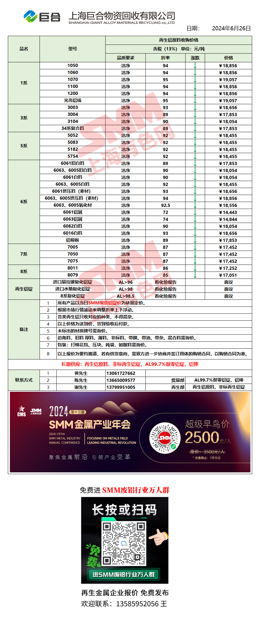 6月26日上海巨合 废铝采购报价