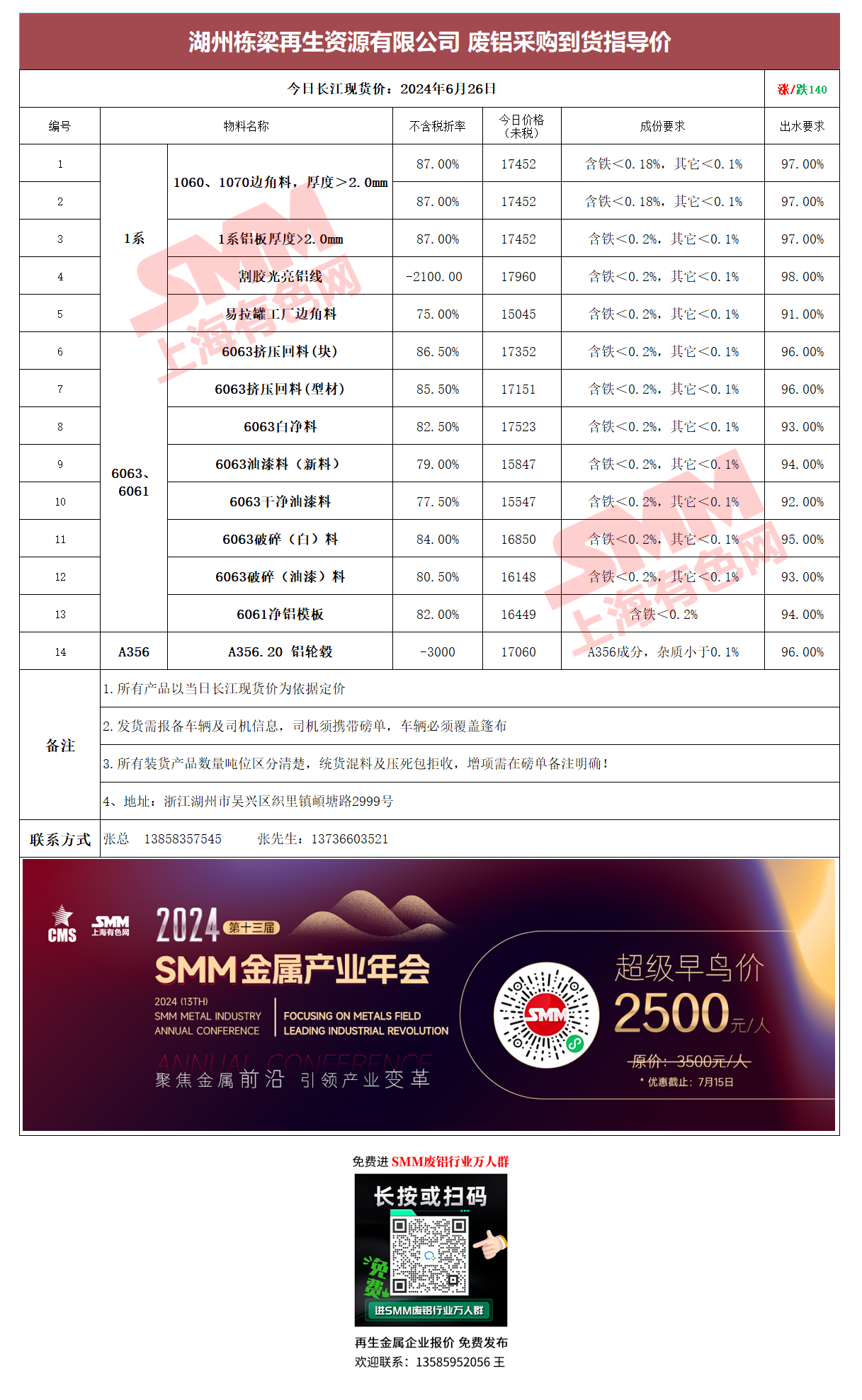 6月26日湖州栋梁再生 废铝采购报价