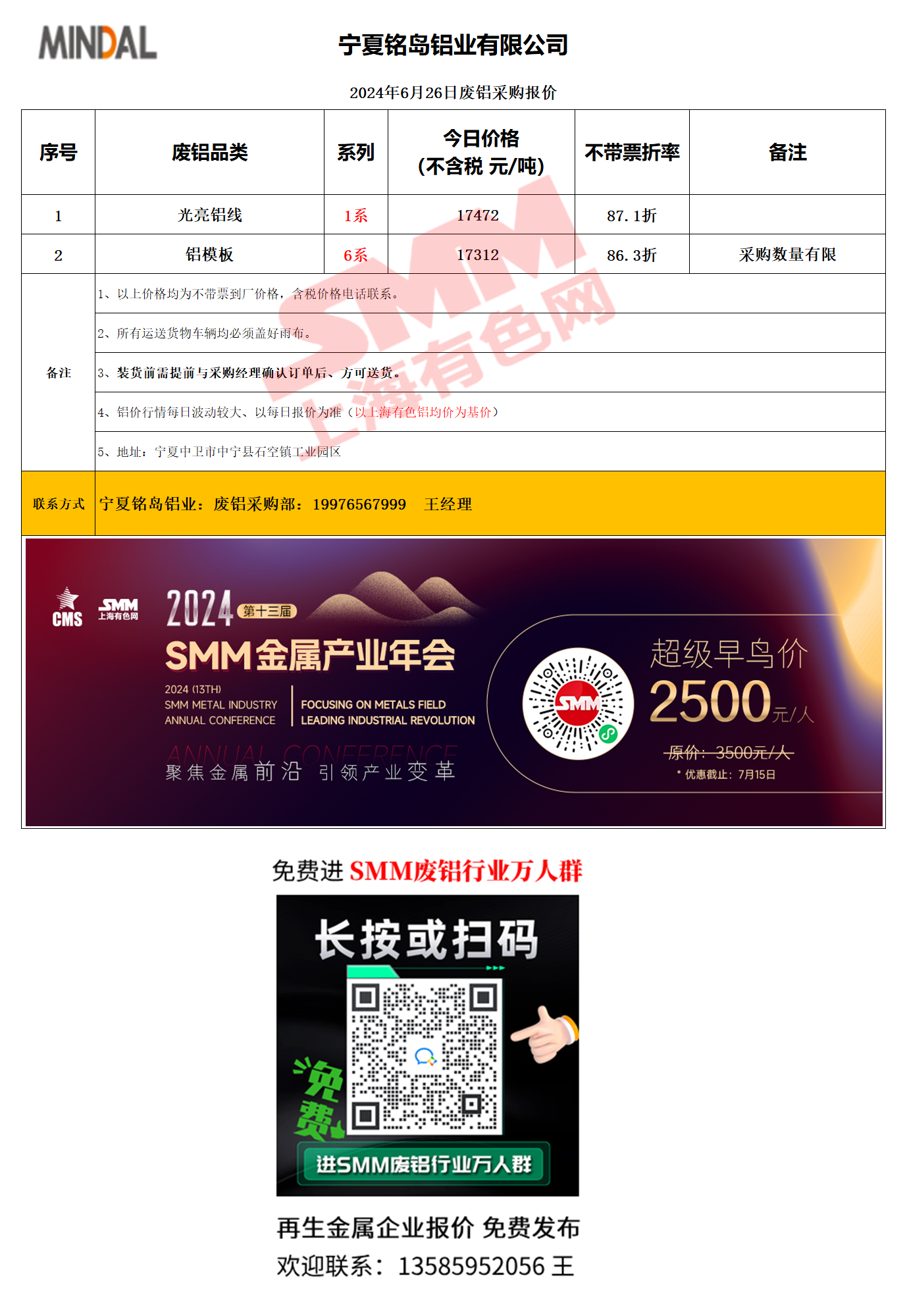 今日宁夏铭岛铝业 废铝采购报价已更新,有货的朋友欢迎联系我们!