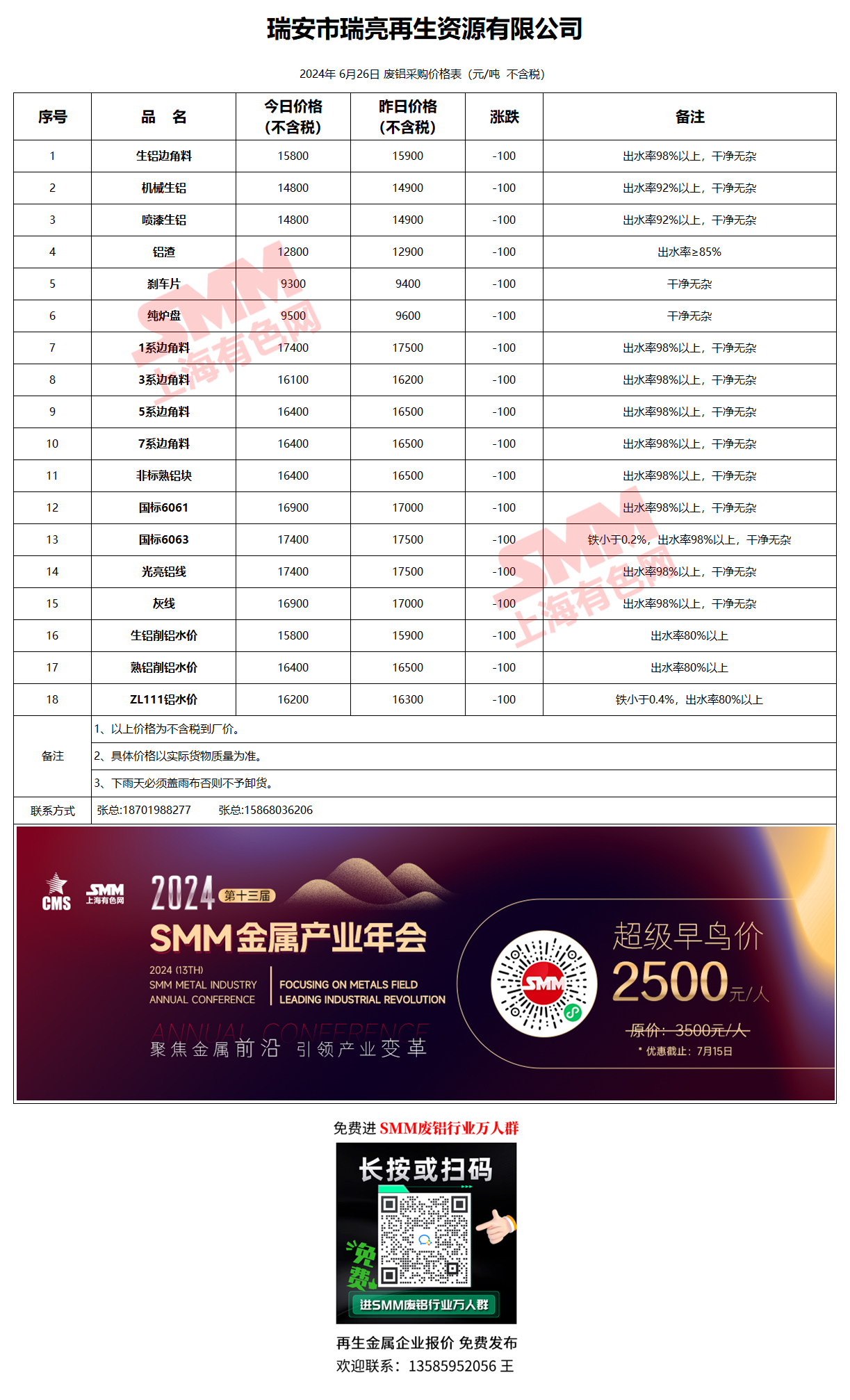今日瑞亮再生 废铝采购报价已更新,有货的朋友欢迎联系我们!