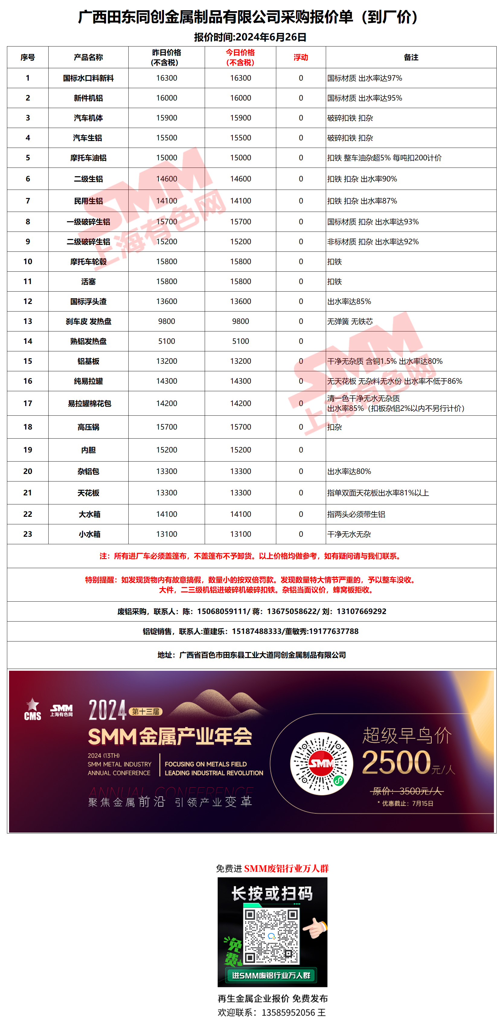 今日广西同创 废铝采购报价已更新,有货的朋友欢迎联系我们!