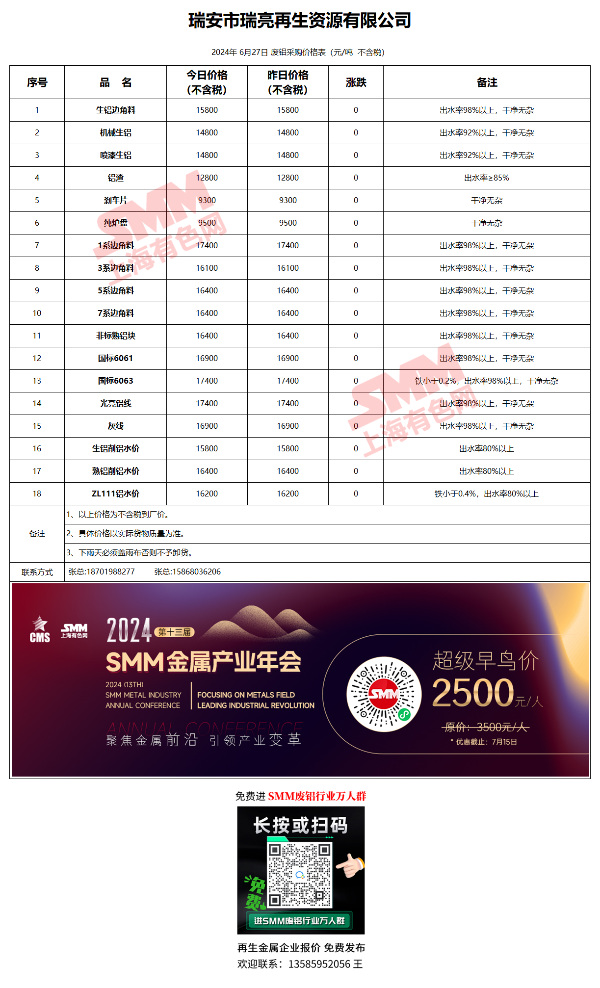 今日瑞亮再生 废铝采购报价已更新,有货的朋友欢迎联系我们!