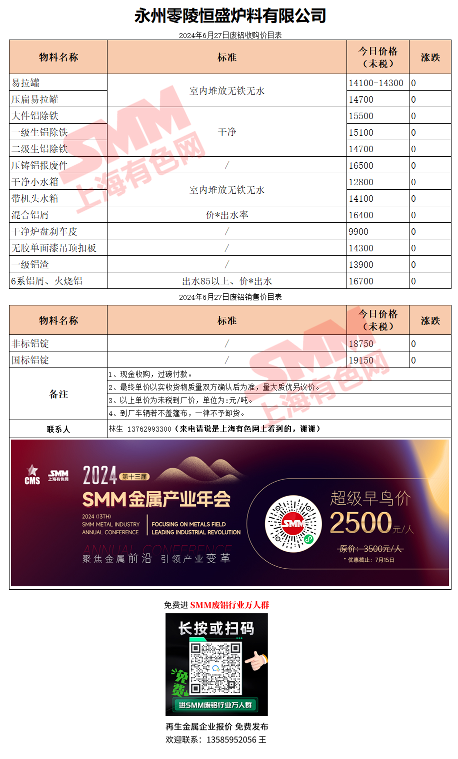 今日湖南恒盛 废铝采购报价已更新,有货的朋友欢迎联系我们!