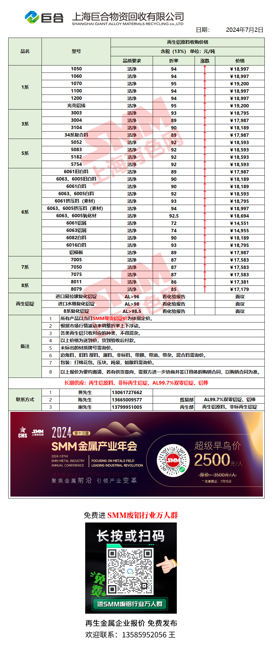 今日上海巨合 废铝采购报价已更新,有货的朋友欢迎联系我们!