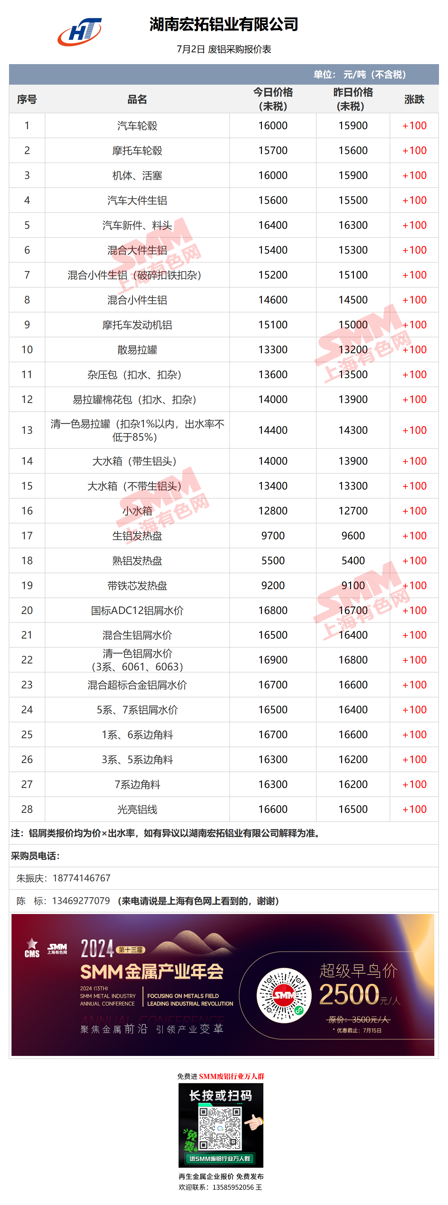 7月2日湖南宏拓铝业 废铝采购报价