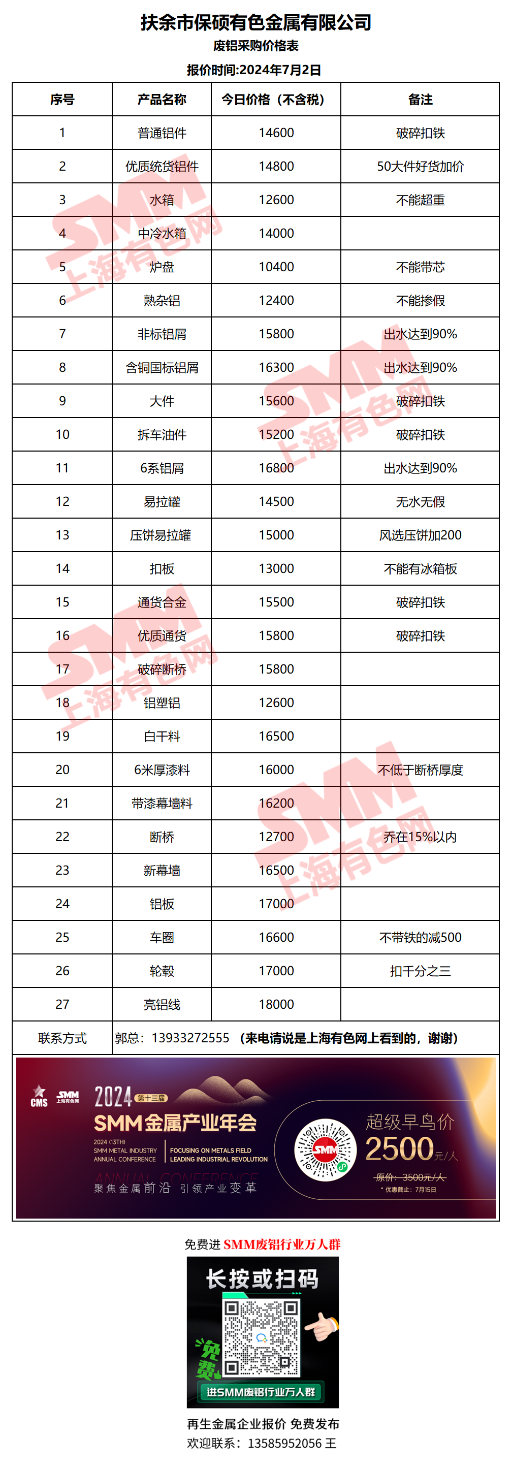 今日保硕金属 废铝采购报价已更新,有货的朋友欢迎联系我们!