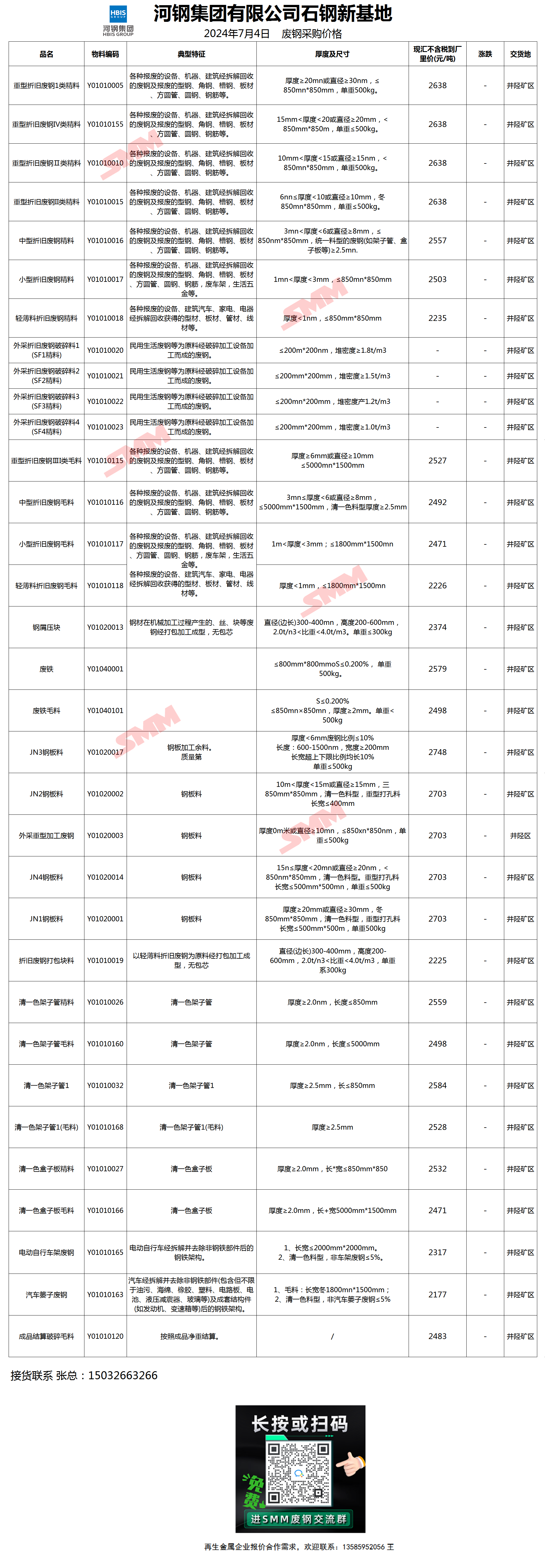 今日河钢石钢新基地 废钢采购报价已更新,有货的朋友欢迎联系我们!
