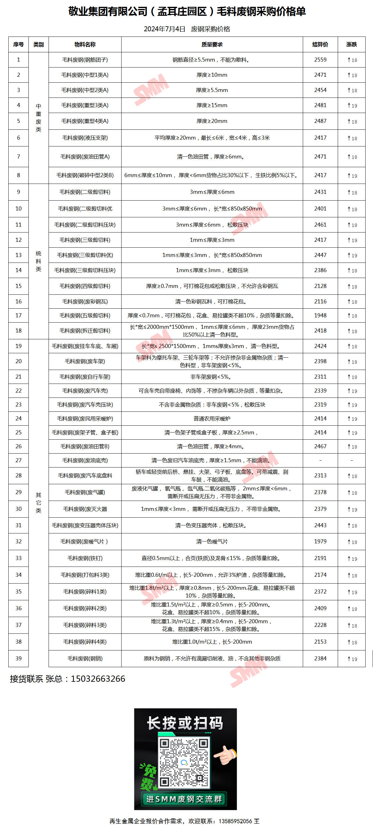 7月4日11时00分 敬业钢铁(孟耳庄园区) 废钢采购报价