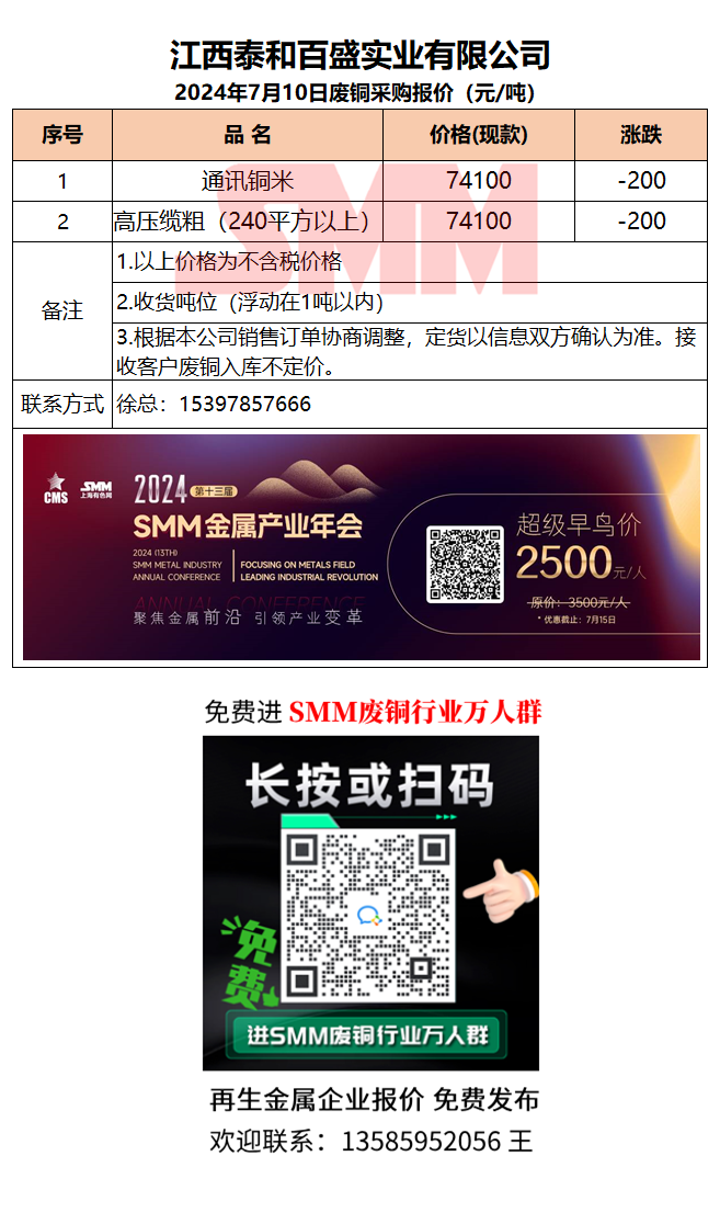 7月10日江西泰和 废铜采购报价