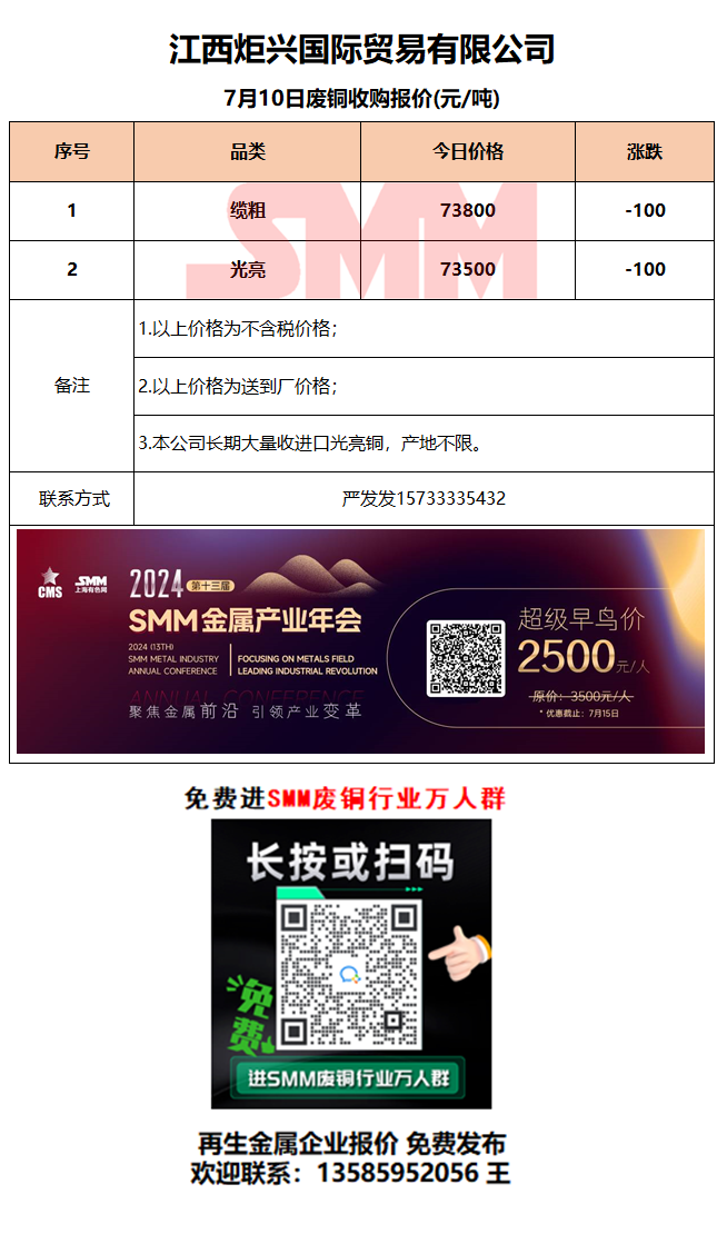 今日江西炬兴 废铜采购报价已更新,有货的朋友欢迎联系我们!