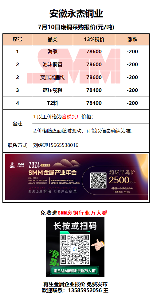 7月10日安徽永杰 废铜采购报价