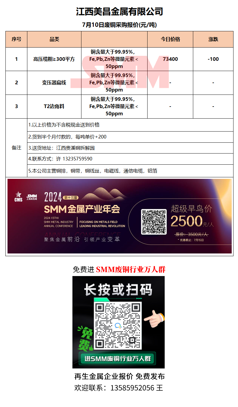 7月10日江西美昌 废铜采购报价