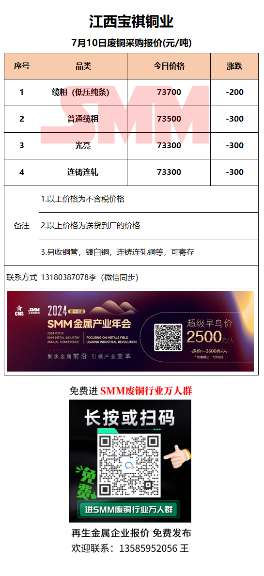 7月10日江西宝祺 废铜采购报价