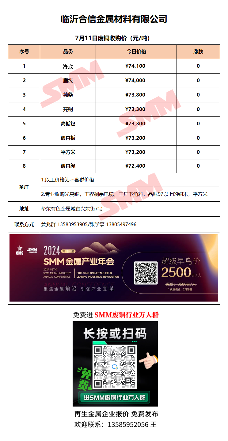 7月11日临沂合信金属 废铜采购报价