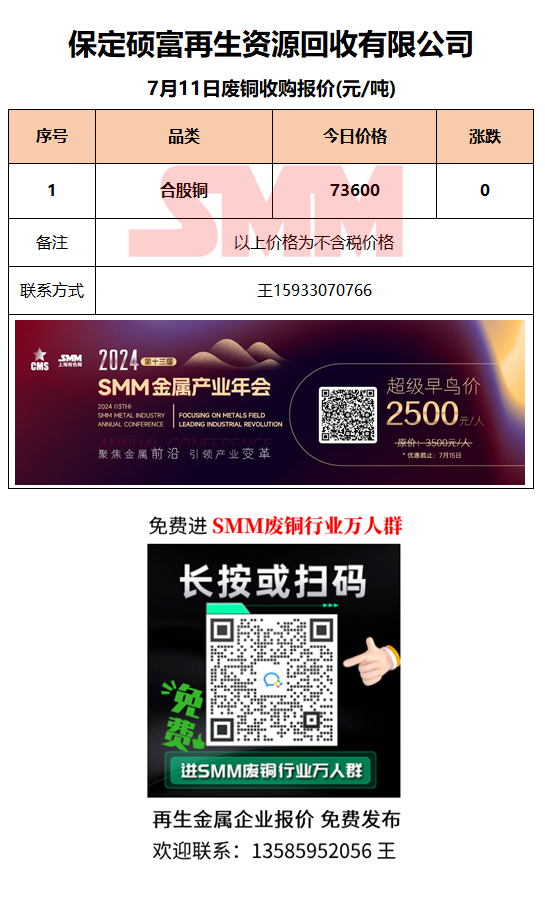 7月11日保定硕富 废铜采购报价