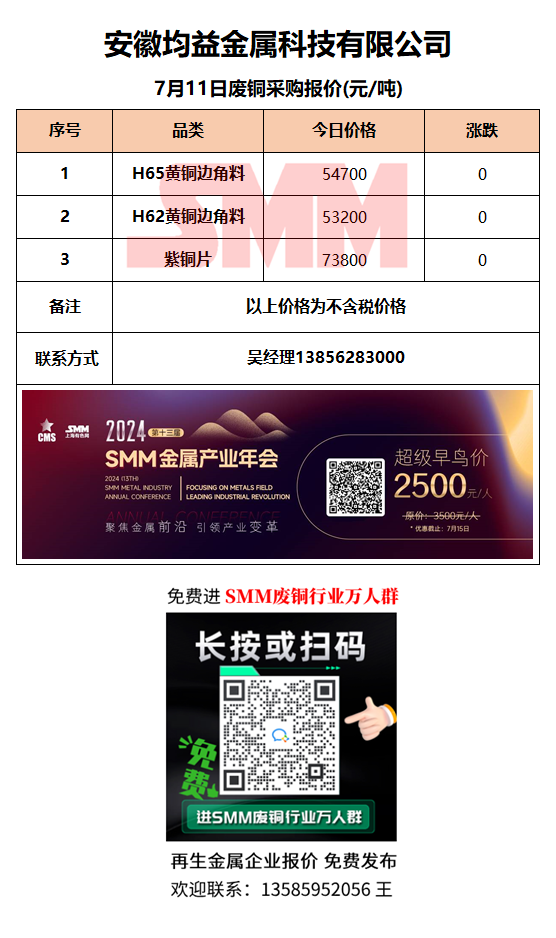 7月11日安徽均益 废铜采购报价