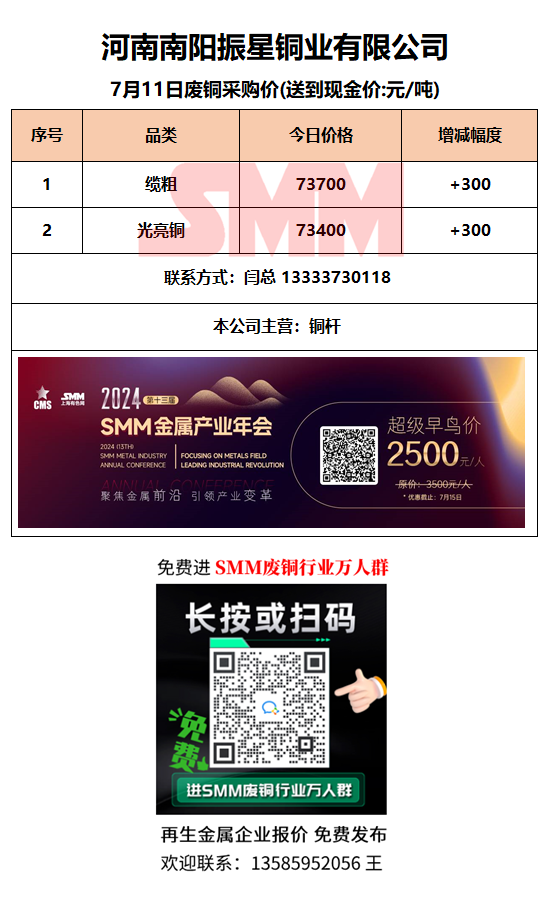 今日南阳振星 废铜采购报价已更新,有货的朋友欢迎联系我们!