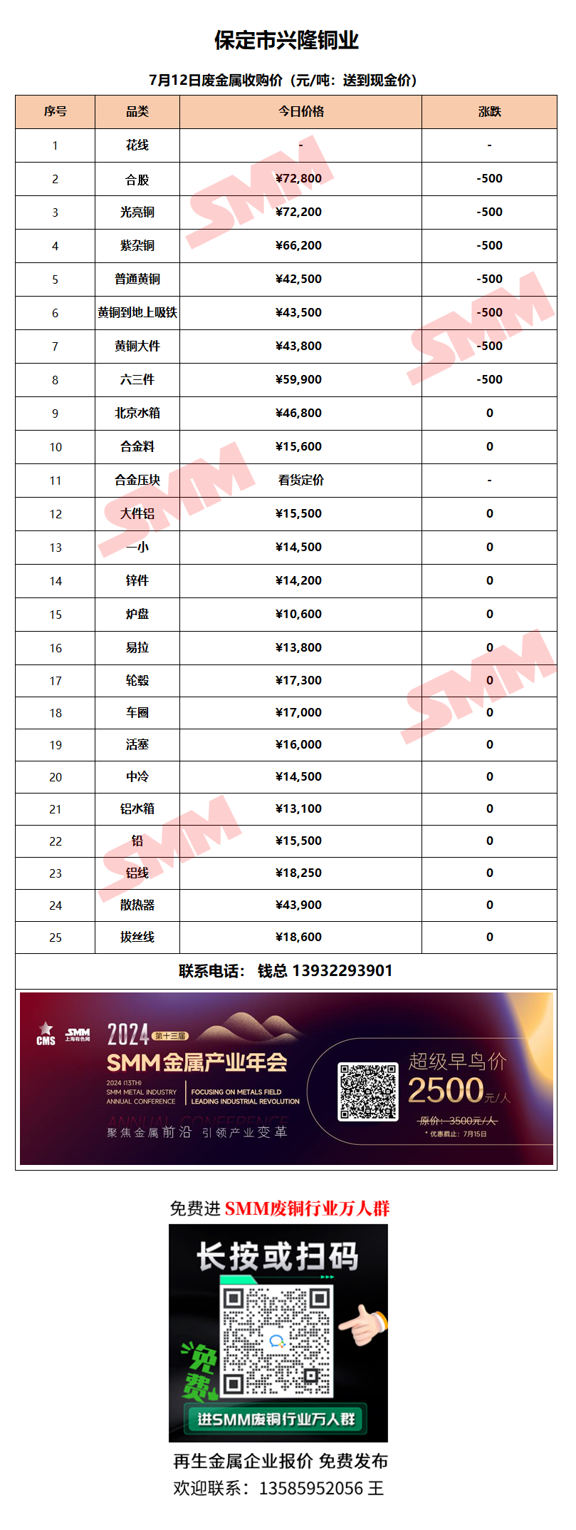 7月12日保定兴隆铜业 废铜采购报价