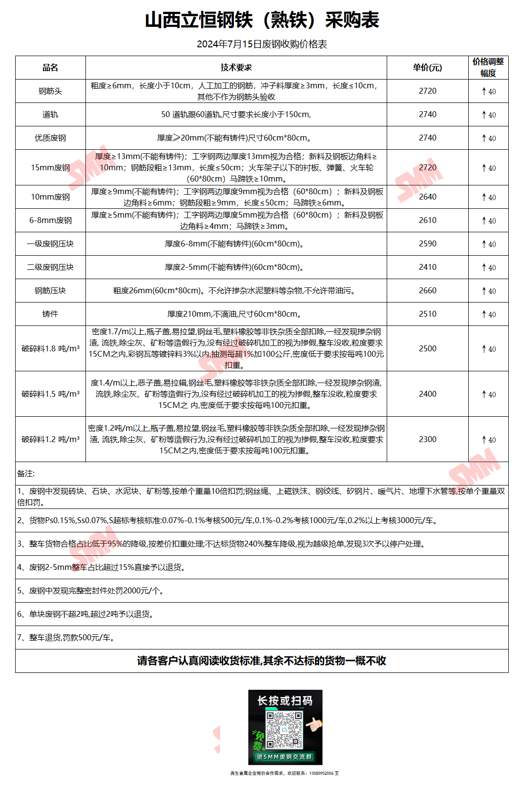 7月15日山西立恒钢铁 废钢收购报价