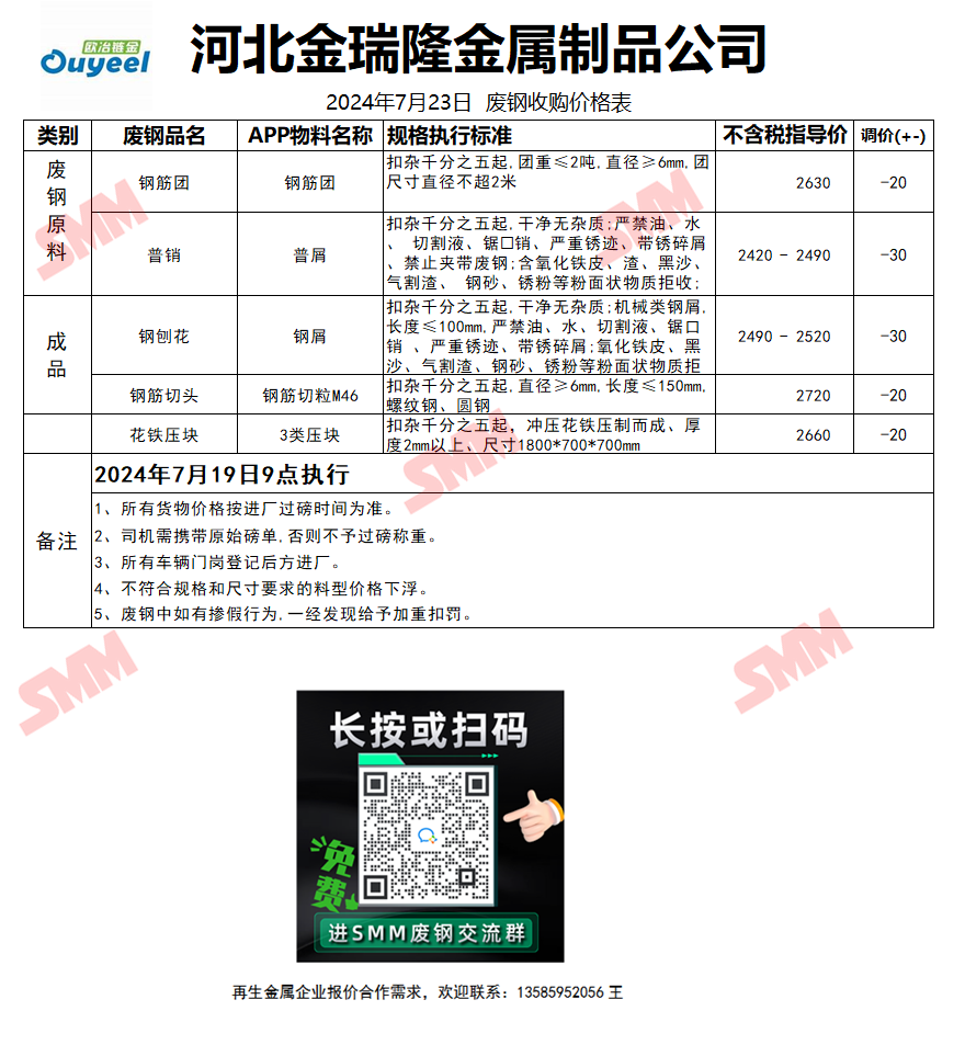7月23日 河北金瑞隆钢铁 废钢收购报价