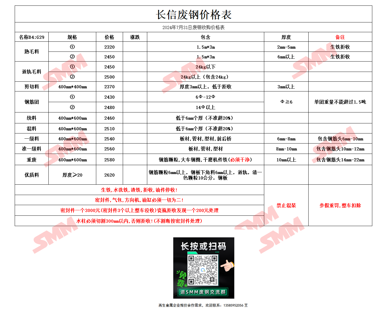7月31日长信废钢 废钢收购报价