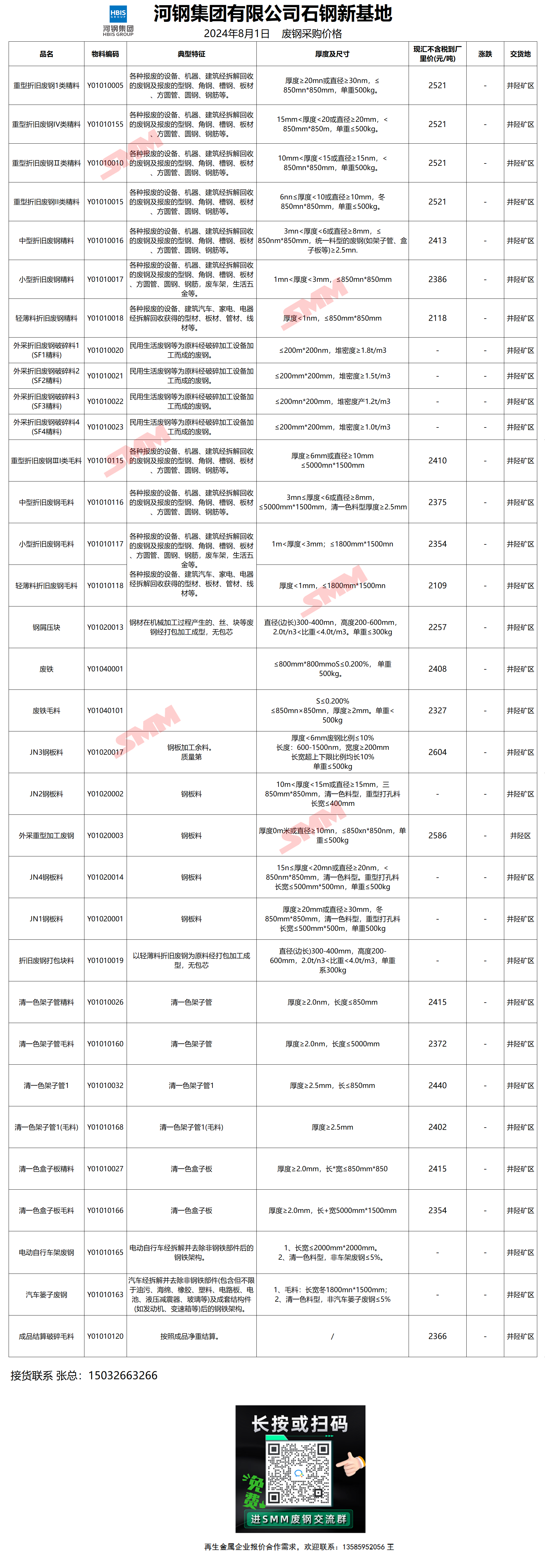 8月1日河钢石钢新基地 废钢采购报价