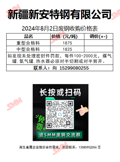 8月2日新安特钢 废钢收购报价