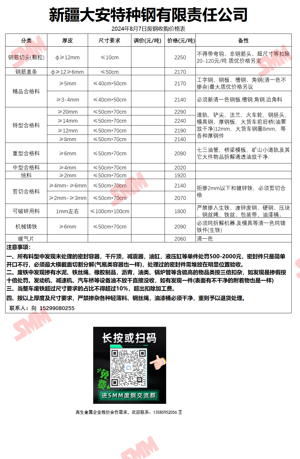 今日新疆大安钢铁 废钢收购报价已更新,有货的朋友欢迎联系我们!