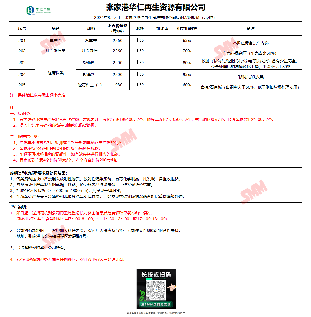 今日张家港华仁再生 废钢采购报价已更新,有货的朋友欢迎联系我们!